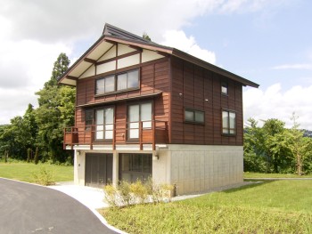 2004年の中越地震で被災した旧山古志村の方々のための住宅再建モデルとして建設された2つの試作棟。自然落雪屋根、棚田の風景になじむ下見板張りの外観、積雪時にも明るい吹抜け、県産杉を活用した真壁造りの内観が特徴。高齢者の2人暮らしを想定し、間口4間×奥行4間の2~3階建てで、1100~1200万円の低コストを実現した。